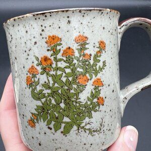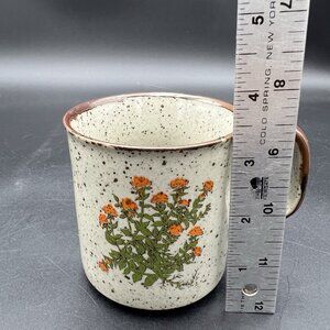 VTG Takahashi Otagiri Orange Wildflower Stoneware Coffee Mug Brown Speckled