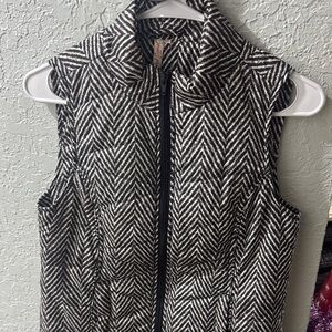 Striking vest featuring diagonal zigzag stripes. Modern geometric pattern creates visual interest. Versatile piece for contemporary outfits.