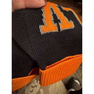These gloves are part of the Rare Gon Louis collection, which reimagined classic athletic aesthetics through the lens of luxury streetwear. Louis Vuitton, founded in 1854 as a trunk maker, has evolved into a global fashion powerhouse. Under various creative directors, the house has blended its heritage monogramming with contemporary pop-culture motifs, such as the collegiate lettering seen on this winter accessory set. Comes in Box with COA as pictured.
