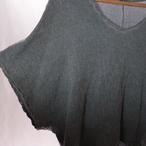 Meo Meli Blouse Top Linen Scoop Neck Italy Gray Boho Dolman Short Sleeve