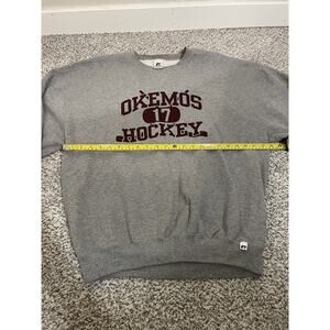 Okemos Hockey Russell Athletic Pullover Crewneck Gray Mens XL. Excellent used condition. See photos for condition and measurements. One very small minor stain. See photos.