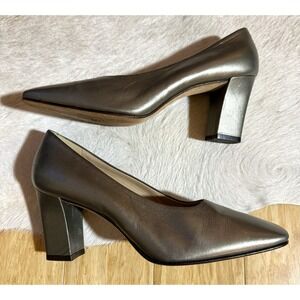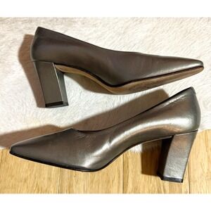 ENZO ANGIOLINI Vtg y2k Valentina Gray Leather Square Toe Block Toe Pumps Size 8N