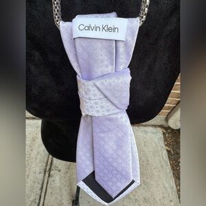 This exquisite silver necklace features a stunning bee pendant adorned with silver and gold tones, placed on Calvin Klein lavender monochrome necktie. Perfect for adding a touch of elegance to any outfit.