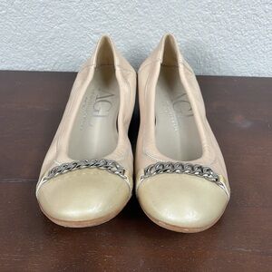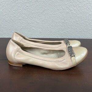 AGL Ballet Cap Toe Flats with Chain at Toes Nude Beige Gold Sz 38 US 7.5