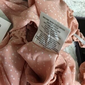 Features an ivoory polka dot pattern, Looks white to me tag says ivory ruffled straps, and a smocked hem for a flattering and comfortable fit.
