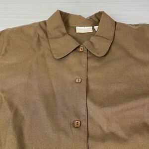 Alfred Dunner Button Up Blouse Women's 22W Brown Monkeys Palms Short Sleeve NWT
