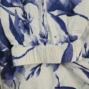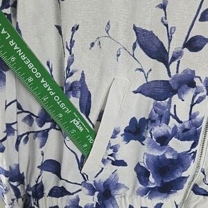 Chicos Blue Floral Full Zip Bomber Jacket White Rayon Size 1 Small Medium