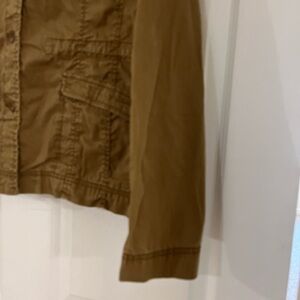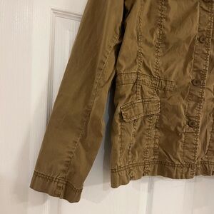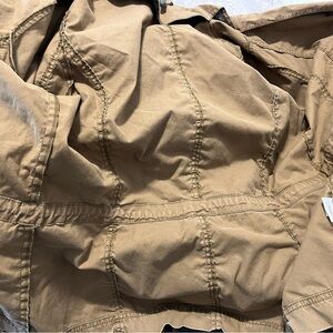 Eileen Fisher Utility Jacket Ruffle Collar Large Tie Cinch Waist Safari