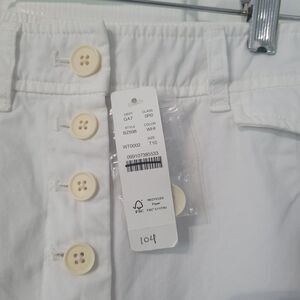 Elevate your wardrobe with these stylish J. Crew chino pants in a classic white color. These pleated button-front pants feature a high-rise waistline and wide-leg design for a comfortable and flattering fit. The pants are made of 100% cotton woven fabric, which makes them durable and machine washable for easy care.