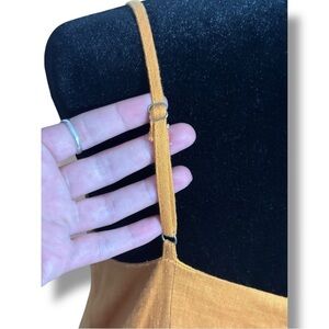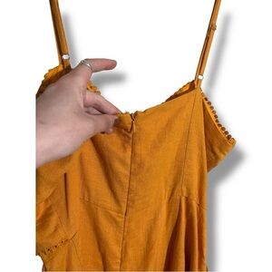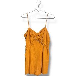 HYGVE Chic Sleeveless Crochet Trim Mustard Adjustable Straps Tie-Front Romper