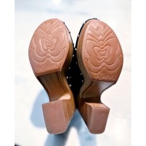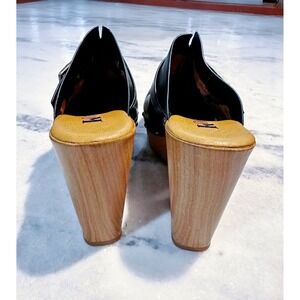 Korks Black Leather Wood Clogs Buckle Studded Heel Mule Shoes Women Size 6
