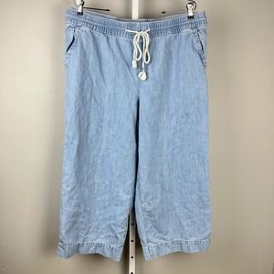 Ann Taylor LOFT Crop Denim Pants Womens XL Light Blue Wash Cotton Linen