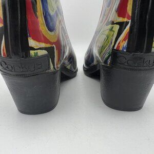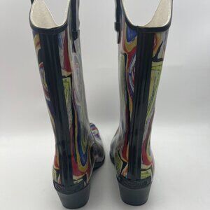 Corkys Nomad Funky Multicolor Abstract Rubber Western Cowboy Rain Boot Size 7