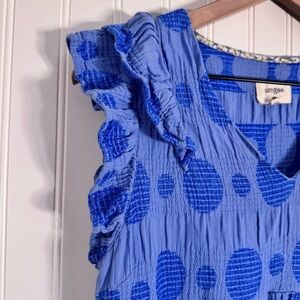 Umgee Cornflower Swiss Dot Jacquard Short Dress Blue 100% Cotton Women’s Size M