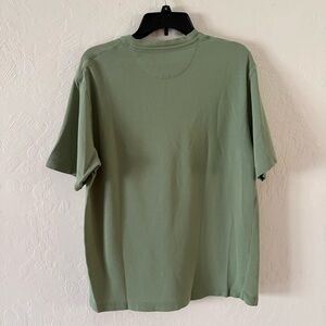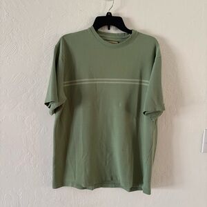 Two preowned men’s short sleeved ribbed shirts with crew neck and stripes on chest. There is no size or care tags. Yellow shirt measures 21.5” armpit to armpit/28” shoulder to front hem. Green shirt measures 21.5” armpit to armpit/27” shoulder to front hem. There is also a small stain on the front of the green shirt. Please see last pic.