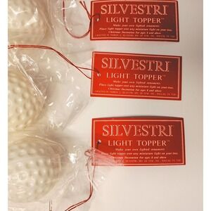 The product is a set of six packages (12 pieces) of vintage Silvestri light topper covers. These small plastic golf balls go over lights on a strand of Christmas lights or battery operated lights to make a unique statement piece. They are new in the package. The packages have some wear.
