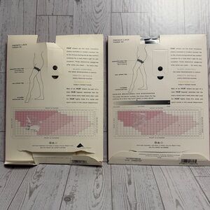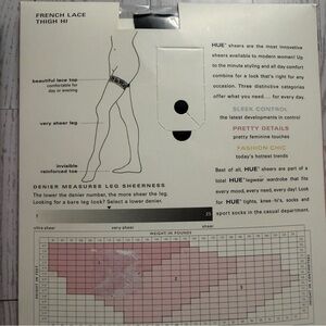 Brand new in package. Listing is for 2 pairs - a black and a "natural" beige. Size 3 - the largest option - see size chart photo. This would fit plus. Lace top very sheer leg. Beige pair has been removed from package, but not worn. The black pair is brand new store fresh. Has French lace details. Beautiful.