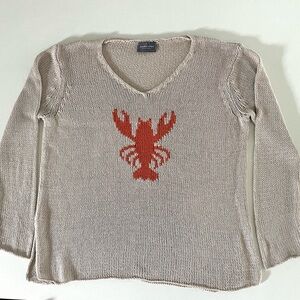 Lightweight V-neck Tan sweater with Lobster 🦞 on front. Very cozy comfy!