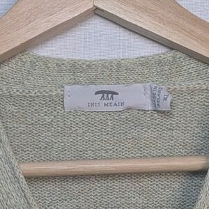 INES MEAIN Ireland Hurler V-Neck Linen Long sleeve sweater Green Button Front