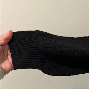 Chic Black Long Sleeve Sweater Dress with White Accents
