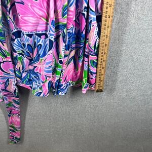 This Lilly Pulitzer Elaine Velour Robe in size Small/Medium features a beautiful floral pattern with a touch of mermaid character, perfect for a summer, fall, or spring wardrobe. The robe has a V-neckline, 3/4 sleeves, and a tie closure for a comfortable and stylish fit. Made from a polyester blend velour fabric, it is easy to care for with machine washable garment care. The kimono-style robe includes a belted waist for a flattering silhouette, making it a perfect addition to any woman's sleepwear collection.