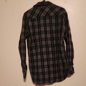 Stylish plaid button down shirt in black and gray. Perfect for casual outings or a relaxed office look.