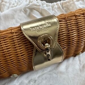 Kate Spade Brown Wicker Clutch with Goldtone Hardware, 5.25”H, 9”W, .75”D