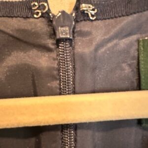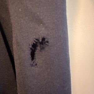This elegant navy blue dress is perfect for any occasion. Its classic design offers a timeless look. Ideal for both casual and formal events. There is a tear on one side of the dress.