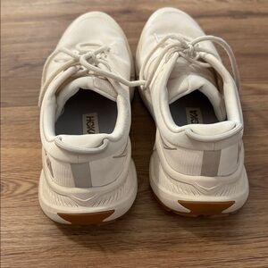 Hoka transport women’s walking / hiking / everyday shoes in a beautiful cream / off-white color. These have only been worn a few times and are in great worn condition.