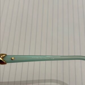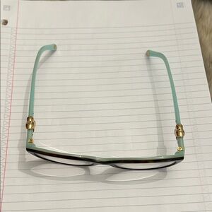 Chic black frame glasses with light blue arms. Perfect for a modern look. All Original. Little to no scratches on lenses
