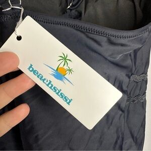 NWT Beachsissi Halter Tankini Top Criss Cross Black Swim Tank Women’s XL