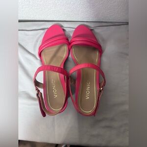 VIONIC Emmy Women's Size 9/EU 41 Coral Pink Orthotic Slingback 3" Wedge Sandals
