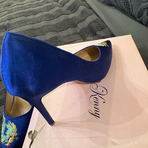 Chic blue satin shoes by Penny Loves Kenny. Stylish and versatile.