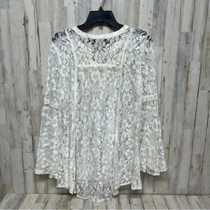 Lola P lace blouse top Womens size Medium Ivory Bell Sleeve