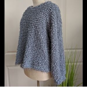 Vince Camuto Top Textured Eyelash Pullover Mock Neck Long Sleeve Grey Blue M NWT