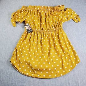 Hint Of Blush Dress Womens Large Yellow Polka Dot Tie Off Shoulder