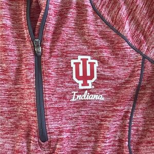 Hoosiers stand up! Not an IU fan but worn for football game. Heathered red long sleeve top by Under Armour. Features a quarter-zip and chest logo.