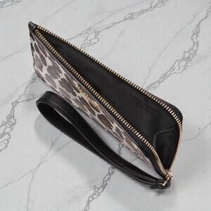 Kate Spade Lucy Leopard Small L Zip Wristlet in Cream Multi KH770