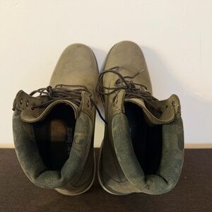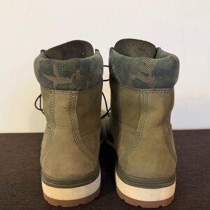 Rugged Timberland boots in green. Perfect for outdoor adventures. Durable and stylish.