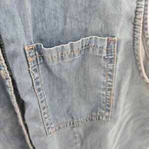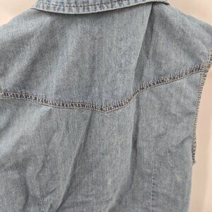 Forever 21 Blue 100% Cotton Denim Snap Pearl Tie Front Vest Medium