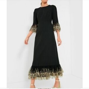 Pomander Place Lillith Black Maxi Dress M NWT Gold Lace Formal Gala