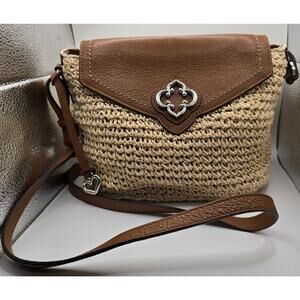 Brighton Finley Flap Straw Leather Crossbody Bag in Natural Luggage (cream & brown) from the Toledo Collection. Features: magnetic snap closure, interior key holder, 3 interior pockets, and one exterior pocket. In very good prelove condition. It does show minor wear on the bottom and hardware has minor scratches (see pics). Leather strap and accents are intact. Please examine pics for condition.