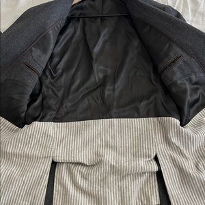 This jacket functions has an over coat with an interior zip and double button closure to act like a blazer.