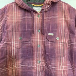 Ariat Rebar Flannel Hooded Shacket Shirt Jacket Women L Purple Plaid Western NWT