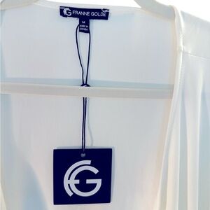Elevate your style with this elegant white top from Franne Golde (Size M). Designed with a flowing, flattering silhouette, it offers the perfect blend of sophistication and comfort. Ideal for both casual and dressy occasions — a versatile staple for any wardrobe.