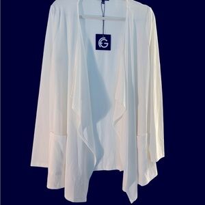 ✨ Franne Golde White Open Front Flowing Top (M) – Timeless & Polished Look