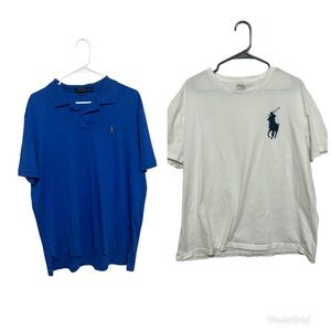 Lot of 2 Polo Ralph Lauren XL White Big Pony Tee Blue Pima Soft Touch Polo