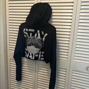 Stay stylish and comfortable with the women's cropped hoodie. This black hoodie is perfect for casual outings and adds a trendy touch to any outfit.