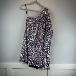 Stella Nova Anthropologie Neon Pastel Sequin Ajo Lou One Shoulder Mini Dress 10
