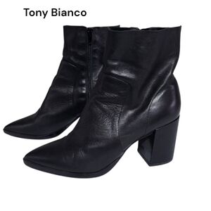 Tony Bianco Brazen Luxe Lux Block Heel Ankle Boot Bootie Shoe Black Leather Women 10